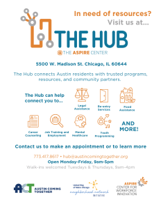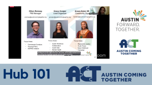 As part of our focus on providing support to Austin in hopes of improving quality of life, the Hub team provides referrals for residents to connect to a wide variety of resources. Austin Coming Together (ACT)’s Austin Community Hub team hosts virtual Hub 101 info sessions on ACT’s Facebook page so Austin residents can stay informed of the various resources and opportunities available to them through the Hub.